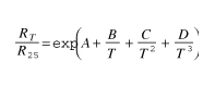 這裏T指開氏絕對溫度,A、B、C、D是常數,根據熱敏電阻的特性而各有不同,這些參數由熱敏電阻的製造商提供。