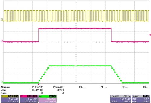 圖 2 10 kHz 時鍾頻率時的 LED 開啟和關閉情況
