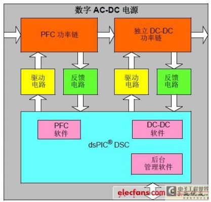傳統開關電源(Switch Mode Power Supply,SMPS)控製通常使用純模擬技術。低成本和高性能數字信號控製器(Digital Signal Controller, DSC)的出現開啟了開關電源控製的全新境界,並且標誌著電源產業正朝著數字革命的方向發展。