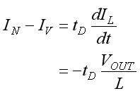 (3)式中的t是時間,而VOUT是電源轉換器(如圖1所示)的輸出電壓。當L減小時,便會相應減少。由於tD不會受ILS、L和VOUT影響,並且VOUT也不受L影響,所以IN會隨著L而下降。這種關係可用下式表示: