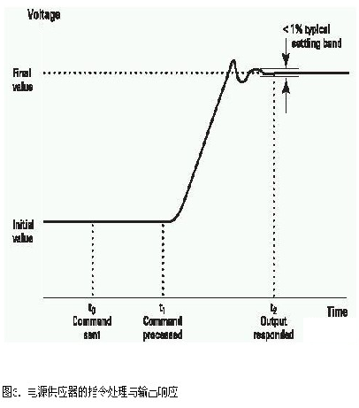將電源供應器的輸出電壓設定變更為新值時,必須經曆幾個步驟,如圖3 所suo示shi。這zhe些xie步bu驟zhou所suo花hua的de時shi間jian很hen有you限xian。當dang電dian源yuan供gong應ying器qi接jie收shou到dao指zhi令ling時shi,必bi須xu加jia以yi處chu理li,因yin此ci會hui有you一yi段duan指zhi令ling處chu理li時shi間jian。接jie著zhe,電dian源yuan供gong應ying器qi的de輸shu出chu會hui予yu以yi回hui應ying並bing變bian更geng成cheng新xin的de設she定ding。它ta在zai某mou個ge穩wen定ding區qu段duan內nei達da到dao終zhong值zhi所suo花hua的de時shi間jian,即ji為wei輸shu出chu響xiang應ying時shi間jian。1%的穩定區段對ECU 測試來說是合適的。特別需要注意的是下調設定時的輸出響應時間。許多電源供應器都必須依賴真實的DUT 負載來降低電壓,在負載較小的情況下,一些不具下調設定器的電源供應器可能需要花一秒左右的時間來達到終值。N6752A 電源供應器模組內建了一個下調設定器,能夠加快下調設定的速度,而不受負載的影響。在ECU 測試中,上調與下調設定都必須夠快才行。