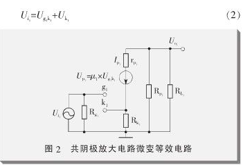 該電路的微變等效電路如圖2所示,這裏將電子管看成是受控電壓源。圖中,輸入電壓可表示為: