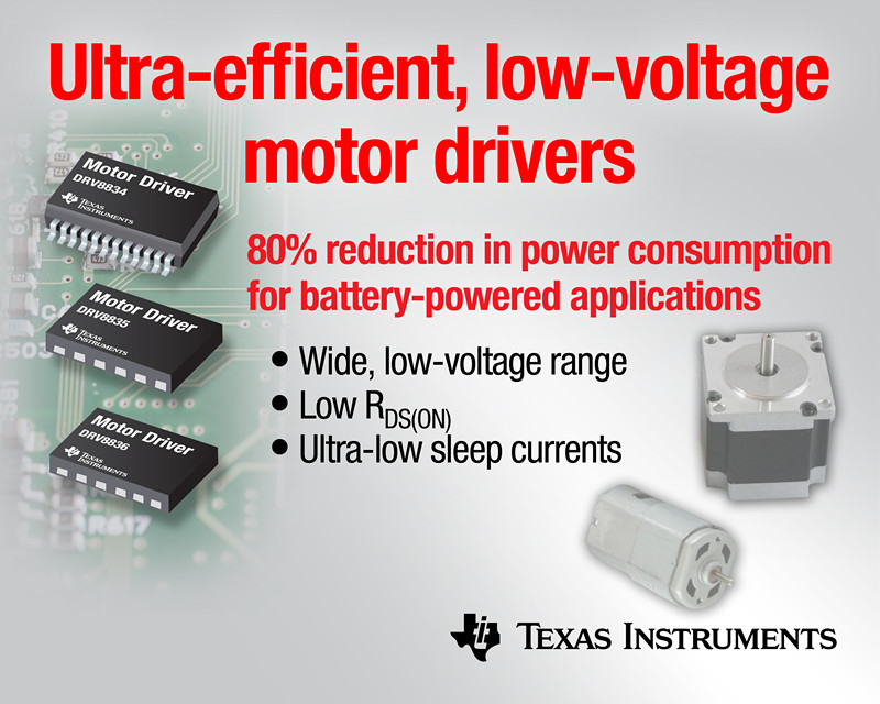 DRV8x:德州儀器推出超高效率低電壓電機驅動器