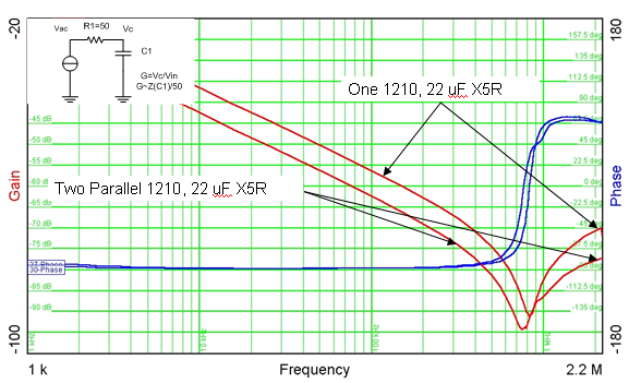 圖 1 並聯電容阻抗寄生現象衰減效果