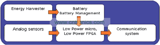 圖 2: 由環境能量供電的低功率係統架構
