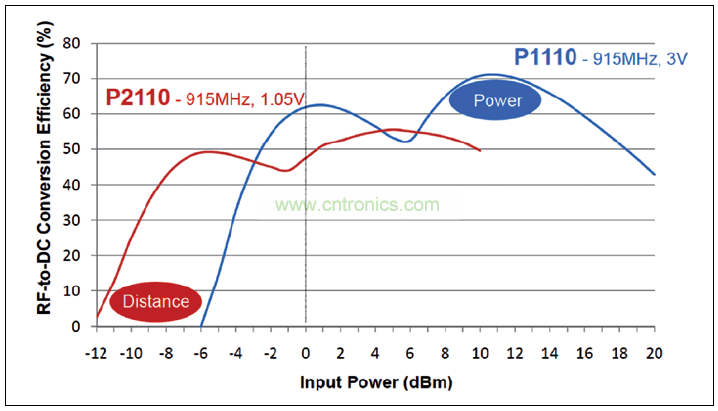 圖 4: Powercast 能量采集器的轉換效率