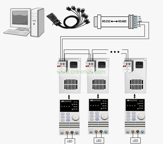選用靈活配比的電源,結合支持多通道的老化監控軟件,可實現同時對上百個LED的老化監控測試。