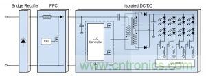 圖 5. 高壓功率拓撲,結合 PFC 輸入與 LLC 諧振控製