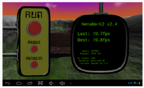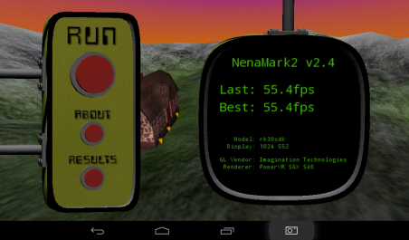 NenaMark2是一款用於Android設備的硬件加速基準測試程序,通過演示一款實時渲染的畫麵來對手機的圖形能力進行測試,包括反射、動態陰影、曲麵參數、複雜光線模式等內容,需要Android 2.0以上係統和OpenGL ES 2.0支持。