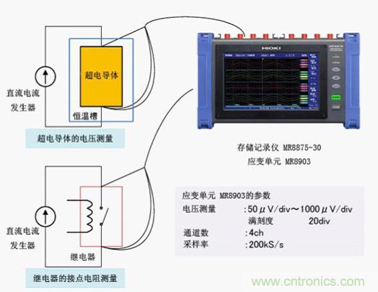 【導讀】升級後的日置存儲記錄儀MR8875-30應用實例,MR8875-30可長時間記錄外加在設備、超電導材料、接點的微小電壓波形的測量。此次實測案例的重點是記錄設備的特性評估、超電導材料的評估、接點的電壓下降(接點電阻測量)等μV等級的電壓。而且還需要同時測量溫度和其他電壓。