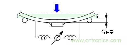 針對電路板偏轉應力的評價,如圖所示是耐電路板彎曲性的實驗。