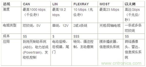 表1:汽車網絡總線