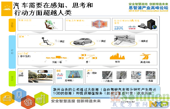 汽(qi)車(che)在(zai)未(wei)來(lai)會(hui)更(geng)加(jia)緊(jin)密(mi)地(di)相(xiang)互(hu)連(lian)接(jie),會(hui)有(you)更(geng)多(duo)的(de)信(xin)息(xi)通(tong)過(guo)車(che)與(yu)車(che)之(zhi)間(jian),或(huo)者(zhe)是(shi)車(che)與(yu)其(qi)他(ta)的(de)設(she)施(shi)和(he)周(zhou)邊(bian)的(de)設(she)施(shi)之(zhi)間(jian)進(jin)行(xing)交(jiao)換(huan),也(ye)就(jiu)意(yi)味(wei)著(zhe)我(wo)們(men)的(de)車(che)子(zi)要(yao)連(lian)接(jie)到(dao)雲(yun)當(dang)中(zhong)。NXP的安全互聯方案可以確保信息傳輸的安全性。