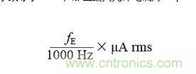 IEC 60601是國際電工委員會針對醫療電氣設備安全性和有 效性發布的一係列技術標準。標準規定,正常情況下通過人體的最大直流漏電流為10 μA,在最壞的單一故障狀況下為50 μA。最大交流漏電流取決於激勵頻率。如果頻率(fE)小於或等於1 kHz,那麼最大允許電流為10 μA rms。如果頻率大於1 kHz,則最大允許電流為