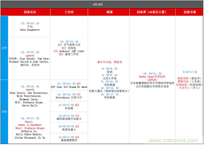 此外,6月19日下午將設有女性創客沙龍,4位來自不同地區的女性創客將與大家分享自己的經曆以及探討女性創客群體的現狀與發展。