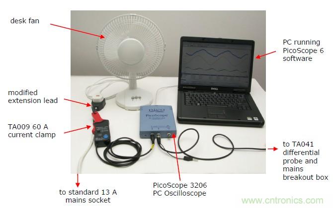 本實驗之所以台扇為例,是因為其內置一個小的交流電動機,能夠產生一個典型的電流波形和低的功率因子。