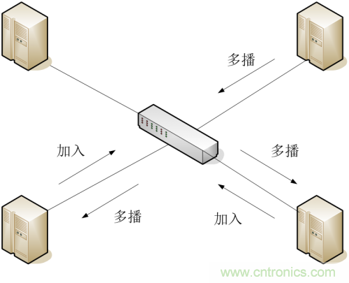 當一台裝置想加入某個多播組時,首先發出GMRP加入報文,交換機將接到的GMRP加入報文的端口加入該多播組,並在VLAN中廣播該GMRP加入報文,VLAN中zhong的de多duo播bo源yuan就jiu知zhi道dao了le多duo播bo成cheng員yuan的de存cun在zai。當dang組zu播bo源yuan向xiang組zu播bo組zu發fa送song組zu播bo報bao文wen時shi,交jiao換huan機ji隻zhi把ba該gai報bao文wen從cong先xian前qian加jia入ru到dao該gai組zu播bo組zu的de端duan口kou轉zhuan發fa出chu去qu,從cong而er實shi現xianVLAN內的二次組播。如圖 1-2所示。