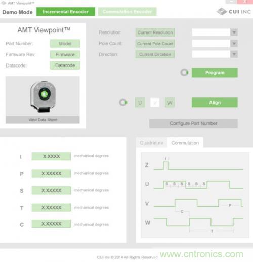 在演示模式,用戶能夠使用GUI,以及進行編碼器相關運作,就像連接實際的編碼器一樣,這是在購買或實際使用之前熟悉編碼器和工具的便利方法。最終,GUI還支持創建可定購的部件編號,用於特定的編碼器型款,這包括輸出格式、套(孔)適配器,以及安裝基座等選項。
