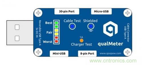 qualMeter能用於各種主流的USB充電線纜的測試,它還可以測試5V充電器的帶負載能力,從而大致確定其質量。