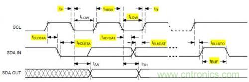 SDA(串行數據線):雙向數據線,為OD門,與其它任意數量的OD與OC門成“線與”關係。