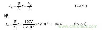 根據上麵分析,以及圖2-55和圖2-56,正常工作時,流過高壓包初級線圈的最大電流Im不應該超過極限電流值Imax的70%,由此,可以求得流過高壓包初級線圈的極限電流Imax為1.49 A 。