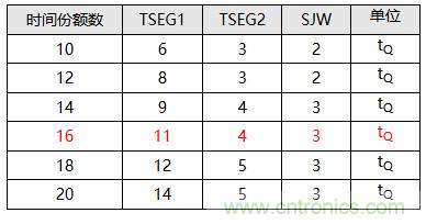 同步跳轉寬度(SJW):SJW的值直接影響到重同步時相位緩衝段的可調節的範圍,SJW的值可以在1~4之間選擇,我們選擇3、4可以使總線獲得更寬的波特率容忍度;