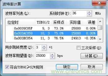 了解設置波特率的原則後,我們采用ZLG的波特率計算軟件,對25kbps波特率的設置參數進行計算,計算結果如圖3。