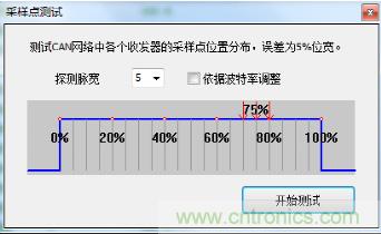 l采樣點測試:采用CANScope對當前波特率下CAN卡的采樣點進行測試,測試結果為75%;
