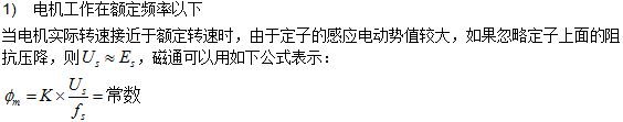 在(zai)交(jiao)流(liu)電(dian)機(ji)的(de)控(kong)製(zhi)過(guo)程(cheng)中(zhong),為(wei)了(le)充(chong)分(fen)利(li)用(yong)鐵(tie)芯(xin),電(dian)機(ji)在(zai)額(e)定(ding)運(yun)行(xing)時(shi)設(she)計(ji)磁(ci)通(tong)處(chu)於(yu)接(jie)近(jin)飽(bao)和(he)的(de)工(gong)作(zuo)點(dian),所(suo)以(yi)必(bi)須(xu)控(kong)製(zhi)電(dian)機(ji)的(de)每(mei)極(ji)磁(ci)通(tong)在(zai)電(dian)機(ji)工(gong)作(zuo)過(guo)程(cheng)中(zhong)保(bao)持(chi)基(ji)本(ben)不(bu)變(bian)。由(you)上(shang)麵(mian)兩(liang)式(shi)可(ke)知(zhi)隻(zhi)要(yao)同(tong)時(shi)協(xie)調(tiao)控(kong)製(zhi)控(kong)製(zhi)Es和Fs就可以達到上述控製要求。