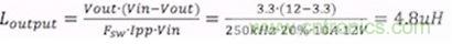 雖然輸出電感並不是影響輸出阻抗的主要因素,但使用合適的值也非常重要。電感值與紋波電流之間的關係是: