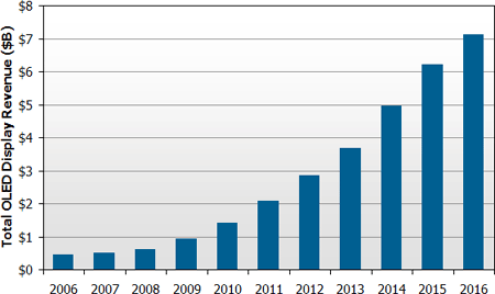 全球OLED營收預計在2016年達到71億美元