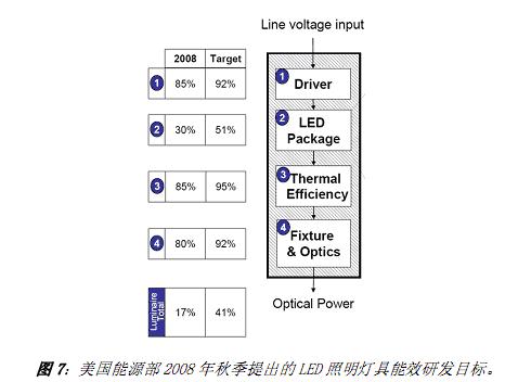LED 驅動器本身也在不斷演進, 著重於進一步提高能效、 增加功能及功率密度。 美國“能源之星”的固態照明規範提出的是照明器具級的能效限製,涉及包括功率因數在內的特定產品要求。而歐盟的IEC 61347-2-13 (5/2006)標準針對采用直流或交流供電的LED模塊的要求包括: