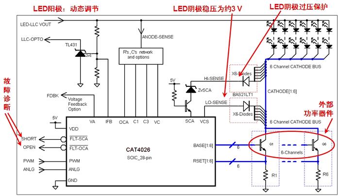 圖6.基於安森美半導體CAT4026的大尺寸LED背光液晶電視多通道線性側光方案
