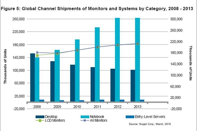 在景氣低迷時期的大部分時間裏,顯示器的消費需求實際上強於企業需求,因為企業在此期間為了削減成本而裁員和大砍設備支出。2010年及以後,形勢將會發生轉變,企業客戶將扮演更重要的角色。