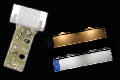 如圖2所示,光線可以從安裝在小尺寸PCB板上的表麵貼裝LED器(qi)件(jian)發(fa)出(chu),並(bing)使(shi)用(yong)限(xian)流(liu)電(dian)阻(zu)和(he)反(fan)極(ji)性(xing)保(bao)護(hu)二(er)極(ji)管(guan)。光(guang)線(xian)被(bei)直(zhi)接(jie)照(zhao)到(dao)簡(jian)單(dan)或(huo)精(jing)心(xin)設(she)計(ji)的(de)導(dao)光(guang)管(guan)上(shang),這(zhe)是(shi)約(yue)束(shu)光(guang)線(xian)的(de)極(ji)其(qi)簡(jian)單(dan)方(fang)法(fa)。比(bi)較(jiao)常(chang)用(yong)的(de)方(fang)法(fa)是(shi)用(yong)適(shi)當(dang)的(de)“透鏡”或投光麵體,安裝方法也經常是在轎車內部把它夾進車門嵌板開口的地方、中央控製台或儀表盤上。