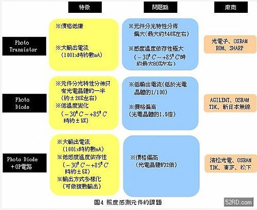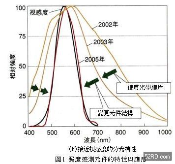 最近幾年照度感測元件(photosensordevice)技(ji)術(shu)上(shang)的(de)進(jin)步(bu),利(li)用(yong)分(fen)光(guang)特(te)性(xing)接(jie)近(jin)人(ren)眼(yan)視(shi)感(gan)度(du)度(du)的(de)照(zhao)度(du)感(gan)測(ce)元(yuan)件(jian),可(ke)以(yi)有(you)效(xiao)解(jie)決(jue)上(shang)述(shu)問(wen)題(ti)。此(ci)外(wai),根(gen)據(ju)統(tong)計(ji)資(zi)料(liao)顯(xian)示(shi),全(quan)球(qiu)照(zhao)度(du)感(gan)測(ce)元(yuan)件(jian)潛(qian)在(zai)市(shi)場(chang)超(chao)過(guo)10億個,這包含6億支移動電話與接近近千萬台的液晶電視,以及車用儀表、顯示器、zhaomingdengjudoushishiyongduixiang。qipanjiyoubenwendejieshao,tixingyezhejiangdiyejingxianshiqizhizuochengbendetongshi,tigaoyingxiangpinzhidengchanpinqugehuajiqiaoyeshibukehulvedeyihuan。