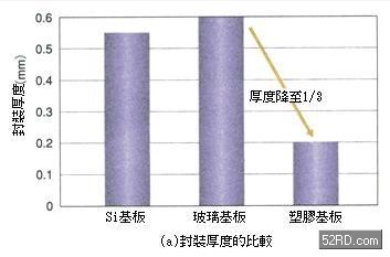 有關封裝薄形化的發展,以TDK與半導體能源研究所共同開發的照度感測元件為例,它是採用塑膠材料當作基板,開發厚度隻有與「0402size」、「0603size」等被動元件同等級的照度感測元件;相較之下傳統玻璃基板的照度感測元件卻高達(圖8),該公司也在開發內建可以使光電流增幅100倍增幅電路的PhotoIC,外形尺寸則與「2015size」同等級(圖8(b))。