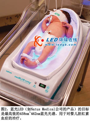 所幸,光療通常對此種病症有效果,因為膽紅素會吸收藍光,分解為水溶形式而排出體外(圖2)。458nm~462nmquyuzhongdezhaidailanguangzuiyouxiao。guoqu,danhongsuzhiliaoguangxiandoucaiyongdingzhidelanseyingguangdengguanhecaiseguolvqi。danshi,yingguangdengdeguangpuxiangduijiaokuan。jinguanqifenbuzhongxinweiyusuoxubochangshang,danguangpufenbuzailiangduanxiajiang,biaoshinengpohuaidanhongsudeguangnengliangxiajiang,yincizhiliaoshijianjiangyanchang。yuzhixiangbi,languangLED膽紅素光源可以有正確的頻率,幾乎不浪費光能量。另外,LED的膽紅素光源有機械穩定特性,更長的壽命,也比熒光設備低廉。在未來,光線療法將能通過“發光服”提供光照,提供比光箱更有效的治療方法。