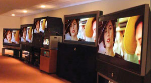 duirenhexianshijishudetuxianghehuazhijinxingpinggudezuihaofangfashibaduobudianshifangzaiyiqi,zaixikongzhigezhongtiaojian,yigeaiyigeditongshijinxingceshi,rangsuoyoudianshidouxianshiwanquanyiyangdegaopinzhihuamian。nixuyaoyigelixiangdeguankanhuanjing、D6500背光、出chu眾zhong的de視shi頻pin信xin號hao源yuan,以yi及ji一yi流liu的de視shi頻pin信xin號hao分fen配pei係xi統tong。然ran後hou,讓rang各ge製zhi造zao商shang派pai出chu最zui好hao的de工gong程cheng師shi,仔zai細xi設she置zhi調tiao節jie他ta們men的de電dian視shi直zhi到dao達da到dao最zui佳jia圖tu像xiang和he畫hua質zhi效xiao果guo。2005年7月我們一整個月都在做這樣的事情,這是一件花時間的工作,但結果非常有意思,絕對值得花費所需的資源。
