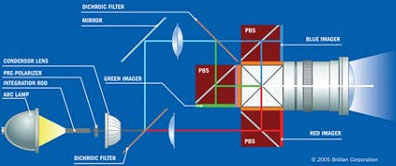 LCoS的de基ji本ben原yuan理li是shi在zai液ye晶jing層ceng後hou麵mian用yong一yi個ge鏡jing子zi,光guang線xian從cong前qian麵mian進jin來lai後hou穿chuan過guo液ye晶jing層ceng,經jing過guo鏡jing子zi反fan射she再zai次ci穿chuan過guo液ye晶jing層ceng射she到dao屏ping幕mu上shang。這zhe需xu要yao稍shao微wei複fu雜za一yi些xie的de光guang學xue部bu件jian,但dan確que實shi非fei常chang有you用yong,它ta有you幾ji個ge直zhi接jie明ming顯xian的de優you點dian,如ru所suo有you電dian子zi部bu件jian都dou在zai鏡jing子zi後hou麵mian,完wan全quan在zai光guang路lu以yi外wai。在zai它ta後hou麵mian有you很hen大da空kong間jian,這zhe樣yang就jiu可ke能neng達da到dao難nan以yi置zhi信xin的de高gao分fen辨bian率lv,LCoS在(zai)所(suo)有(you)顯(xian)示(shi)技(ji)術(shu)中(zhong)分(fen)辨(bian)率(lv)最(zui)高(gao)。另(ling)外(wai)因(yin)光(guang)線(xian)兩(liang)次(ci)穿(chuan)過(guo)液(ye)晶(jing),可(ke)以(yi)達(da)到(dao)很(hen)高(gao)對(dui)比(bi)度(du)但(dan)依(yi)然(ran)非(fei)常(chang)薄(bo),從(cong)而(er)大(da)大(da)改(gai)善(shan)響(xiang)應(ying)時(shi)間(jian)減(jian)少(shao)拖(tuo)影(ying)。我(wo)們(men)將(jiang)在(zai)第(di)三(san)部(bu)分(fen)討(tao)論(lun)LCoS的優點和缺點。