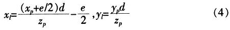 將式(2)帶入式(1)得點P在投影平麵的坐標(xr,yr):