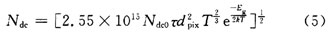 對於CCD圖像傳感器而言,導致暗白點、白(bai)色(se)損(sun)傷(shang)或(huo)顆(ke)粒(li)的(de)原(yuan)因(yin)是(shi)由(you)於(yu)光(guang)電(dian)二(er)極(ji)管(guan)的(de)暗(an)電(dian)流(liu),這(zhe)也(ye)是(shi)決(jue)定(ding)畫(hua)質(zhi)最(zui)重(zhong)要(yao)的(de)因(yin)素(su)。固(gu)定(ding)圖(tu)像(xiang)噪(zao)聲(sheng)的(de)起(qi)因(yin)是(shi)各(ge)像(xiang)素(su)中(zhong)暗(an)電(dian)流(liu)不(bu)均(jun)勻(yun),即(ji)使(shi)沒(mei)有(you)入(ru)射(she)光(guang)一(yi)樣(yang)會(hui)發(fa)生(sheng),它(ta)與(yu)噪(zao)聲(sheng)信(xin)號(hao)電(dian)壓(ya)的(de)儲(chu)存(cun)時(shi)間(jian)成(cheng)正(zheng)比(bi),並(bing)具(ju)有(you)與(yu)溫(wen)度(du)密(mi)切(qie)相(xiang)關(guan)的(de)性(xing)質(zhi),如(ru)式(shi)(5)所示: