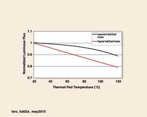 熱/冷因數的改善增加了LED的工作溫度範圍,讓照明設計師有機會在LED極限內的任何結溫下工作。