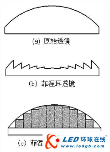 顯然圖1(b)這一菲涅爾透鏡比透鏡(a)要薄,從而吸收小,節省材料。但這種按傳統方法設計的透鏡隻對平行光是正確的,這時(c)中陰影部分對光線是沒有影響的。但是若是非平行光,如LED為光源時,(c)zhongdeyinyingbufenduiguangxianjiuyouyingxiangle。ruobatashanchuzhichengfeinieertoujing,jiuhuizaochenghendadezasanguang。ciwai,ruotoujingdejiemianyongzhexiandaitixiaohuxian,yehuidailaiguangxueshangdewucha。