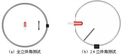 光guang通tong量liang的de測ce試shi有you兩liang種zhong方fang法fa,即ji積ji分fen球qiu法fa和he變bian角jiao光guang度du計ji法fa。變bian角jiao光guang度du計ji法fa是shi測ce試shi光guang通tong量liang最zui精jing確que的de方fang法fa,但dan是shi由you於yu其qi耗hao時shi較jiao長chang,所suo以yi一yi般ban采cai用yong積ji分fen球qiu法fa測ce試shi光guang通tong量liang。現xian有you的de積ji分fen球qiu法fa測ceLED光通量中有兩種測試結構,一種是將被測LED放置在球心,另外一種是將其放在球壁。