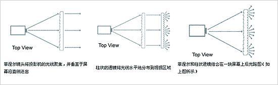4、菲涅爾鏡頭與柱狀鏡頭工作原理及結合後工作原理示意圖