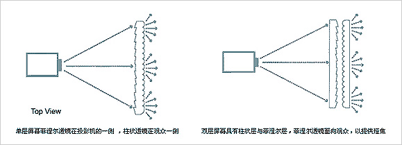 [page]菲涅爾及柱狀鏡頭結合可達到180度水平觀視角,DNP屏幕廣角係列因此在全球獲得巨大的市場占有率。成為多年來市場上最受歡迎的投影屏幕,適於各種應用場合。