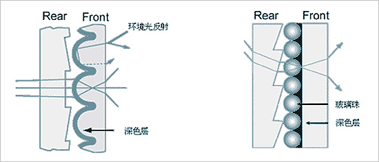 (BB屏幕)這zhe種zhong技ji術shu是shi使shi用yong細xi小xiao的de黑hei玻bo珠zhu,並bing在zai一yi側ce噴pen塗tu上shang一yi層ceng黑hei色se素su層ceng。黑hei玻bo珠zhu能neng拾shi取qu投tou影ying機ji的de光guang線xian,並bing傳chuan送song至zhi觀guan視shi者zhe。照zhao在zai屏ping幕mu上shang的de環huan境jing光guang則ze被bei直zhi接jie吸xi收shou掉diao