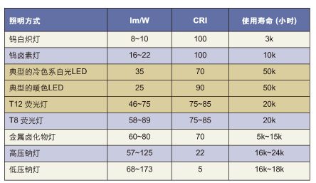 與標準的白熾燈相比,LED消耗每單位電能可以產生更多的光輸出。但與鹵素燈相比時,LED的實際光輸出的優勢並不明顯。最新的LED具備出色的流明每瓦數值,但某些數值是在優化條件下取得的,而通常不是在最高輸出條件下獲得的。一般而言,當LED的電流增加時,光輸出量並未呈線性增加。因此,即使LED在0.5A電流下輸出x流明,它在1.0A電流下也不會輸出2x流明。