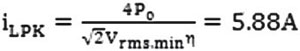 選擇電感L=220H, 選取PQ3230為磁芯,各項參數查表知道,磁芯有效麵積Ae=161mm2,AL=5140nH/N2,Le=7.46cm,磁芯的最高工作磁密Bs=0.32T,電感的峰值感應電流: